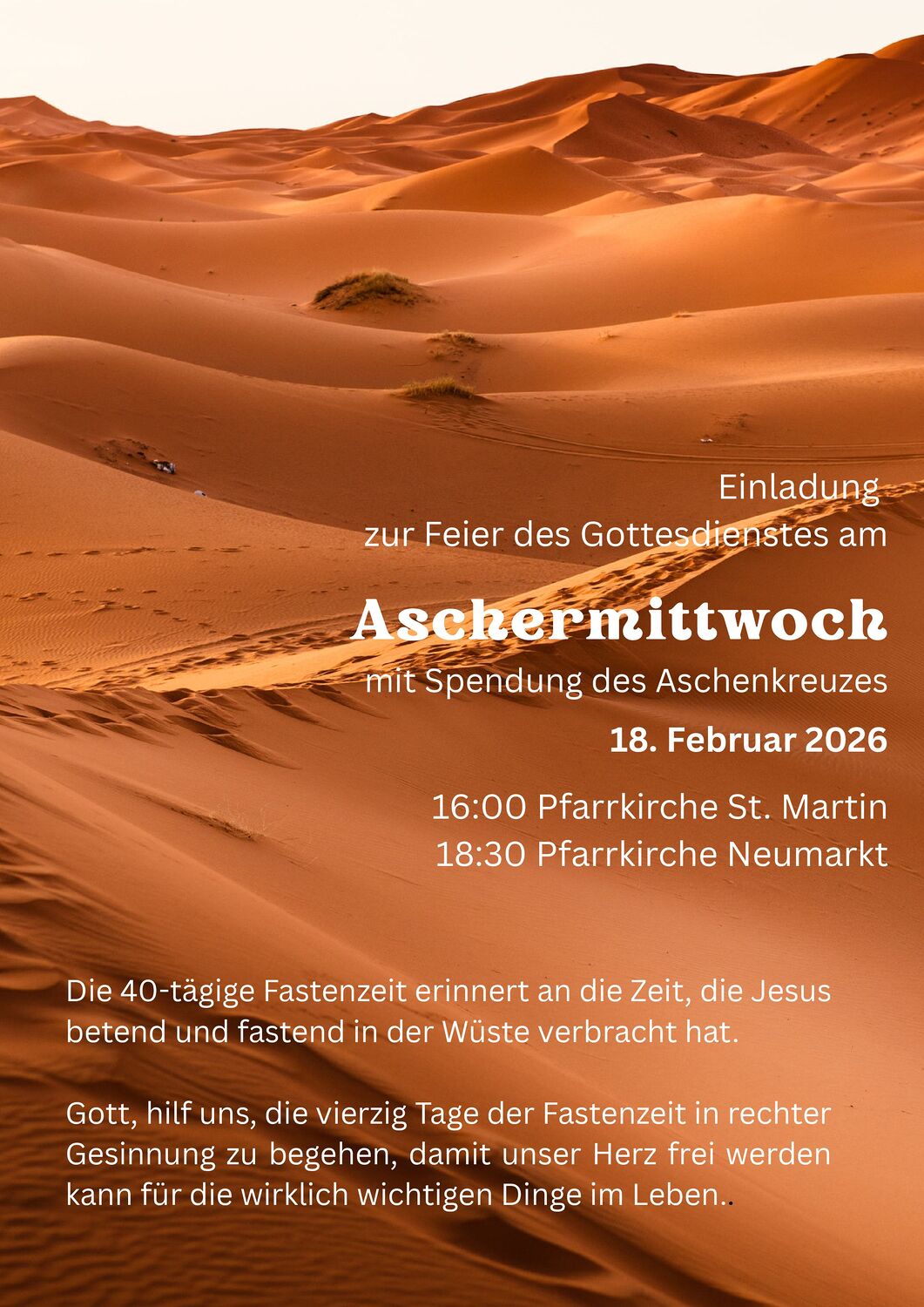 im Februar, April, Juni, August, Oktober, Dezember: Vorabendmesse: 18:30 Uhr und Sonntag: 8:00 Uhr